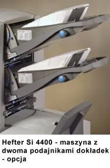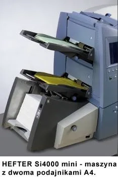 Kopertownica HEFTER SI 4400 mini to wysokonakładowe urządzenie kopertujące z 2 podajnikami A4 (plus podajnik kopert). Urządzenie eliminuje ręczne pakowanie korespondencji do kopert, zwiększając wydajność pracy. Automat jest przeznaczony do firm i instytucji wysyłających dokumenty spersonalizowane w liczbie około 100.000 szt. miesięcznie. Wysoka wydajność urządzenia, zaledwie w ciągu 1 godziny potrafi przygotować 4 tys listów.