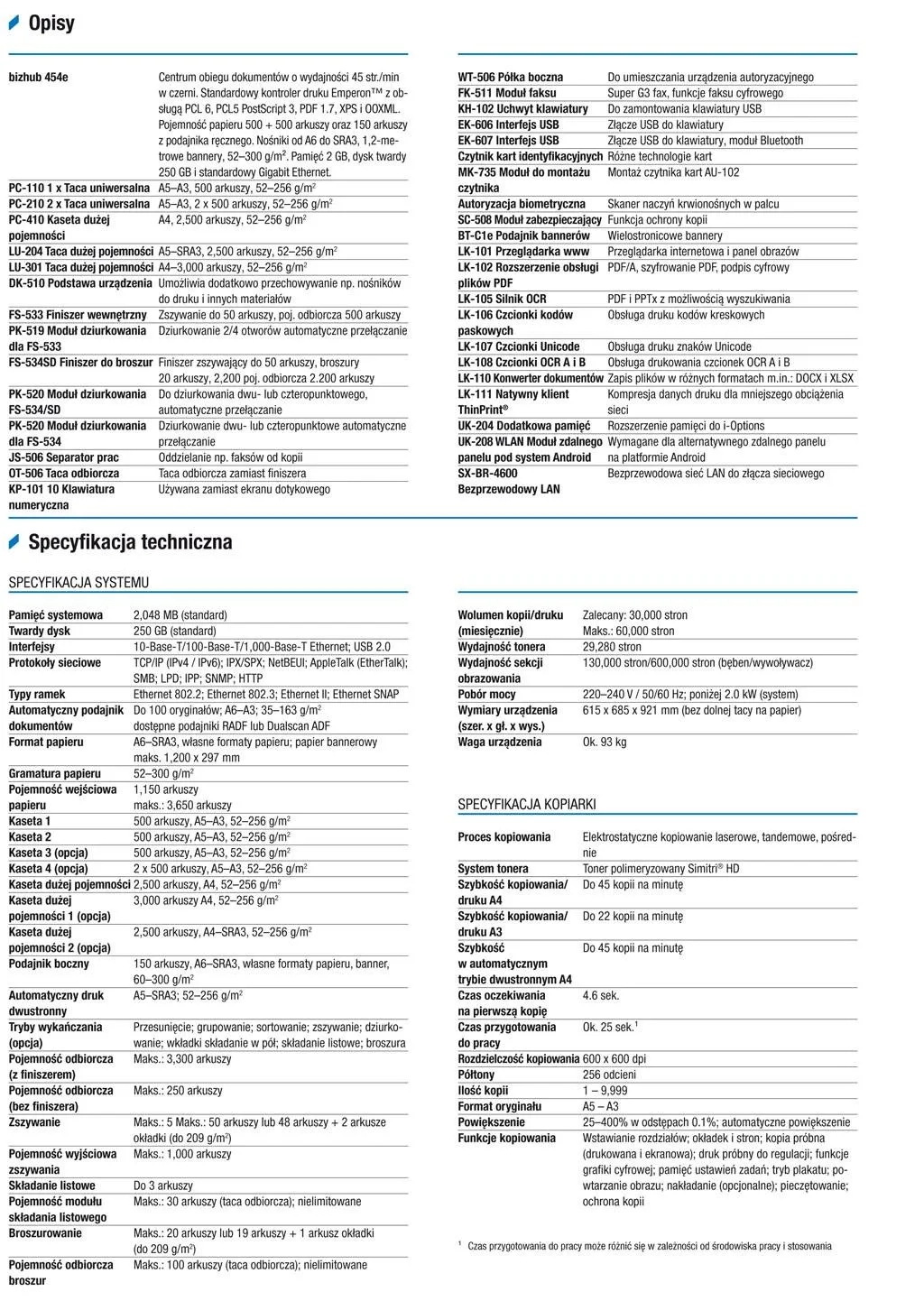 | Szybkość kopiowania | A4: max. 45/45 str./min. (w czerni), A3: max. 22/22 str./min. (w czerni) |