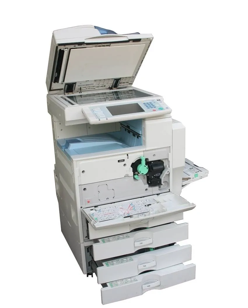 | Opis | 2 x 500- arkuszowe kasety na papier (MP 2851/3351), 2 x 550- arkuszowe kasety na papier (MP 4001/5001), Kaseta dużej pojemności na 1200 arkuszy (MP 4001/5001), Kaseta dużej pojemności na 2000 arkuszy, Taca 1-półkowa na 125 arkuszy, Wewnętrzna taca przesuwna (MP 2851/3351), Finiszer na 500 arkuszy (MP 2851/3351), Finiszer na 1000 arkuszy, Finiszer na 3000 arkuszy (MP 4001/5001), Finiszer broszurujący na 1000 arkuszy (MP 2851/3351), Finiszer broszurujący na 2000 arkuszy (MP 4001/5001), Dziurkacz (2/4 dziurki), Zespół łącznika, Moduł bezpiecznego nadpisywania danych, Moduł zabezpieczenia drukowanych dokumentów przed kopiowaniem, Moduł szyfrowania dysku twardego, Konwerter formatów pliku, Przeglądarka, Interfejs licznika, Moduł interfejsu czytnika zewnętrznego, GlobalScan NX, Opcja skanera zewnętrznego (MP 4001/5001), Znacznik faksu, Dodatkowy port Super G3, Szafka, Pakiet autoryzacji z użyciem kart |