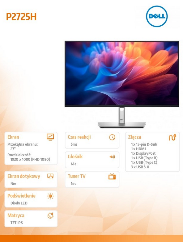 Pokrycie gamy barw sRGB w 99% (do 16,7 mln wyświetlanych kolorów).