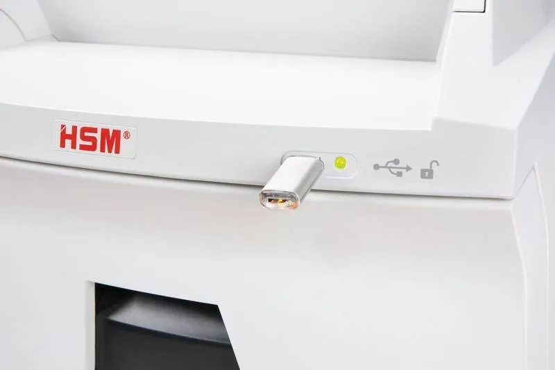 Niszczarka dokumentów HSM AF300 jest wysokiej klasy urządzeniem niszczącym z automatycznym podawaniem papieru i możliwością niszczenia dokumentów bez nadzoru dzięki blokadzie zabezpieczającej włożony papier przed nieautoryzowanym dostępem. Wysoka wydajność niszczenie 300 arkuszy papieru, dodatkowo możliwość niszczenia pojedynczych kartek. Urządzenie może niszczyć zarówno papier jak i zszywki, karty kredytowe oraz płyty CD/DVD. Najistotniejszymi AF300 są wysoka wydajność, wysokojakościowe wykonanie.