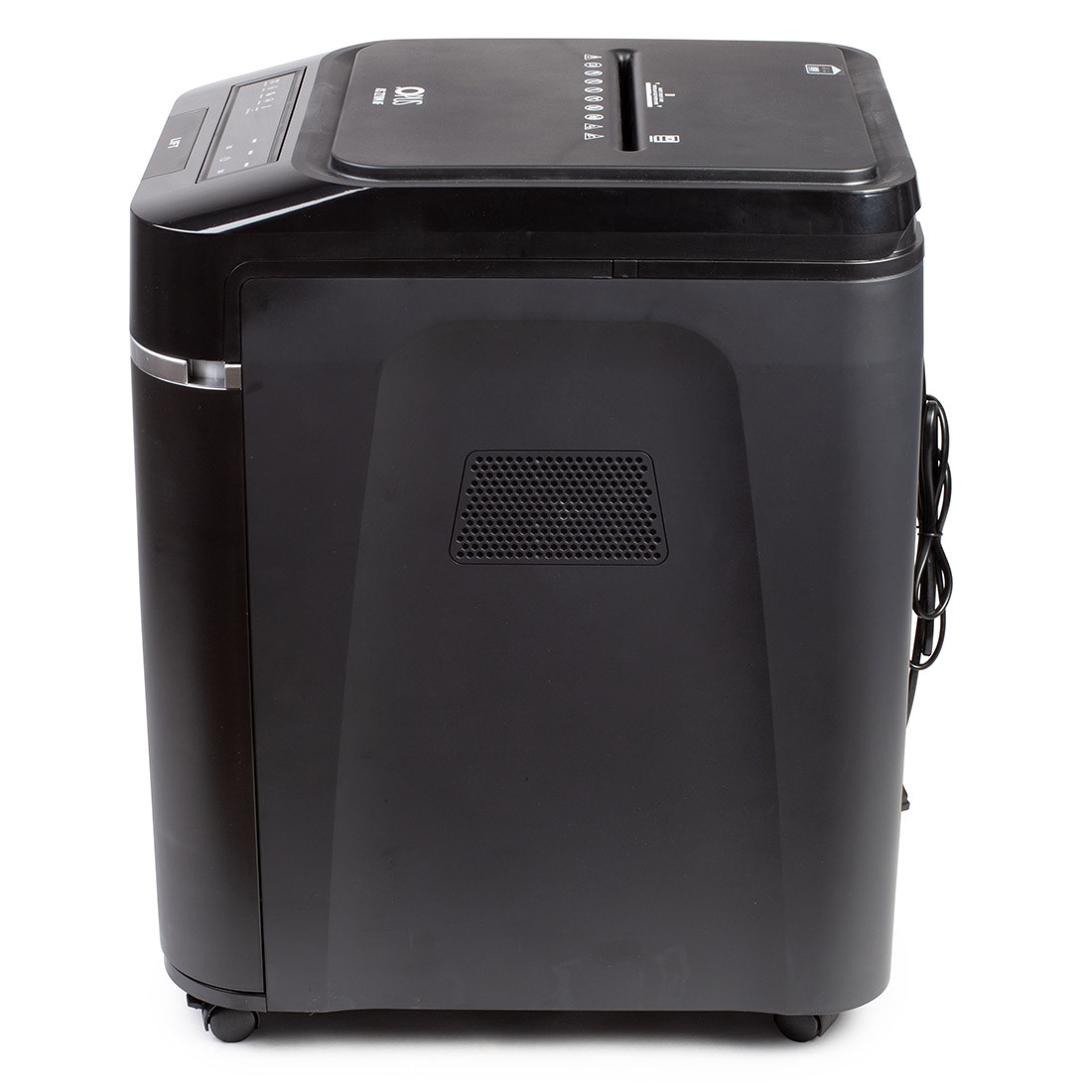 Posiada stalowe separatory oraz noże z hartowanej stali, co zapewnia długą eksploatację i trwałość urządzenia. Niszczarkę obsłużymy za pomocą dotykowego panelu sterowania, na którym znajdują się też wskaźniki LED informujące o aktualnej pracy i stanie urządzenia.