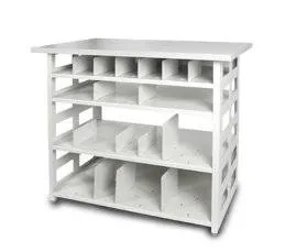 Profesjonalny, metalowy stół roboczy do wykorzystania z dowolnym urządzeniem do oprawy dokumentacji i wykonywania nabłyszczeń. 4 półki z przegrodami umożliwiają wygodne przechowywanie okładek, kanałów czy pojemników na czcionki.