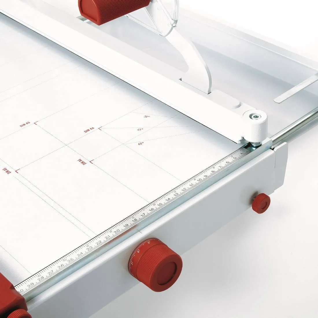 IDEAL Model 1058 to kolejna z super wydajnych obcinarek. Materiał mocowany jest bardzo skutecznym, wspomaganym dociskiem ręcznym i ustawiany pod nożem za pomocą ruchomej półki z prowadnicą ślimakową. Wszystkie elementy osadzone są w stabilnym metalowym korpusie urządzenia. Urządzenie to cieszy się doskonałą opinią wszystkich użytkowników.