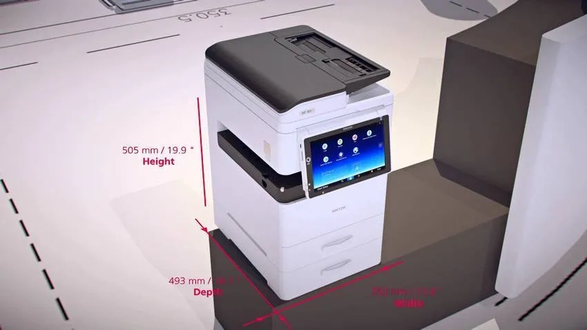 Ogólne | Czas nagrzewania | 27 sekund | | Prędkość wykonania pierwszej kopii | 4,9 sekundy | | Prędkość wydruku ciągłego | 30 stron / na minutę | | Pamięć | Standard: 2 GB - maksymalnie 2 GB | | Dysk | 320 GB | | Wymiary | 350 x 493 x 505 | | Waga | 32 kg | | Źródło zasilania | 220 - 240 V, 50/60 |