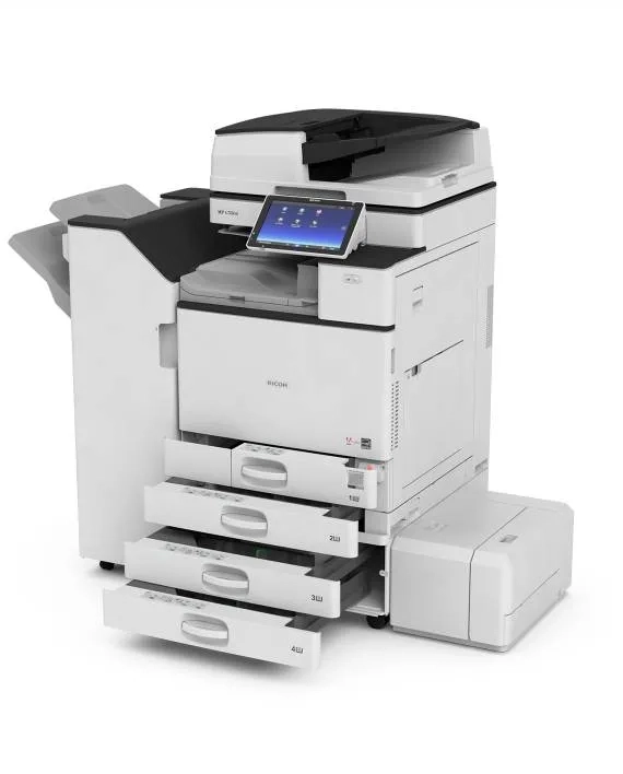 Urządzenie wielofunkcyjne MP C3004SP oferujące kolorowy wydruk w formacie SRA3. Dzięki wbudowanemu kontrolerowi GWNX w konfiguracji z dyskiem twardym, zapewniające rozszerzone funkcje zarządzania i kontroli drukowania, kopiowania oraz skanowania. Dedykowane do grup roboczych wymagających wydajnego urządzenia z możliwością zastosowania funkcji rozszerzonych oraz wysokiej jakości wydruku.