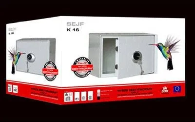 Sejf K 16 zamykany na klucz 16 x 31 x 18 cm. Waga - 10,5 kg ; Pojemność - 6,1 l. Sejfy KOLIBER otrzymały certyfikaty Instytutu Mechaniki Precyzyjnej. ![]() Opis produktu: Certyfikowany sejf z serii Koliber to nowoczesne, wysokiej jakości modele sejfów do użytku domowego i biurowego. Odpowiednie do przechowywania dokumentów, biżuterii, broni, amunicji, akcesoriów związanych z bronią palną itp. Do przechowywania komputerów przenośnych zalecane są modele "Laptop". Produkty z rodziny Koliber umożliwiają optymalne wykorzystanie wolnej przestrzeni tak cennej w domu i w biurze. Ich konstrukcję cechuje duża pojemność przy zoptymalizowanych do potrzeb domowych i biurowych wymiarach zewnętrznych. ![]() Sejf 160 x 310 x 180 mm i wadze 10,5 kg. Cechy urządzenia: