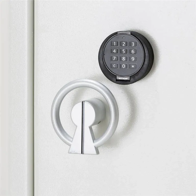 Sejf na laptopy 600x480x700 mm, zamek elektroniczny, listwa zasilająca, półki. ![]() Opis produktu: Certyfikowany sejfy przeznaczony do przechowywania laptopów, zgodny z sejf_na_laptopy_13447/graf/sejf_na_laptopy_var13467_1_0.jpg. Wykonany z blachy stalowej o gr. 4 mm dodatkowo zabezpieczony systemem antywiertniczym. Wyposażony w gniazdo zasilające do ładowania laptopów 240 V oraz system wentylacji. Nawiercone otwory do mocowania do podłogi. ![]() Sejf / szafa ogniotrwała z zamkiem elektronicznym o wymiarach 600x480x700 mm i wadze 115 kg. Cechy urządzenia: