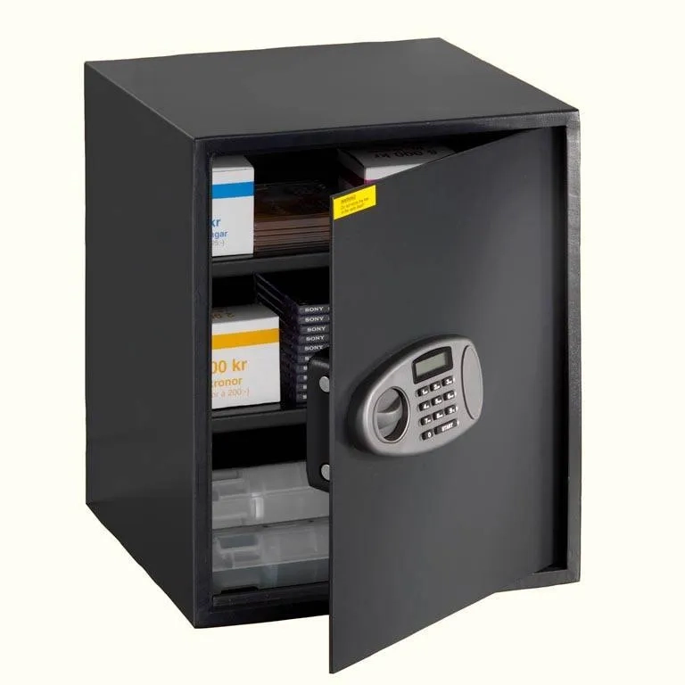 Skrytka z zamkiem elektronicznym 420x350x500 mm ![]() Opis produktu: Sejf z zamkiem elektronicznym o nie wielkich gabarytach, łatwy w montażu. Korpus wykonany z blachy stalowej o grubości 2 mm a drzwi z 4 mm. Skrytka doskonale sprawdzi się jako miejsce przechowania wartościowych przedmiotów np. laptopów, tajnych dokumentów, dysków czy PenDrive z ważnymi danymi etc. Przygotowany do montażu do ściany i podłogi. Wyposażona w zamek elektroniczny z wyświetlaczem LCD (lub zamek mechaniczny na klucz). Kod zabezpieczający można ustawić 6 cyfrowy zarówno dla użytkownika jak i administratora. Dodatkowo skrytka jest wyposażona w zamek mechaniczny awaryjny. Zamek szyfrowy wymaga czterech baterii AA (brak w zestawie).. Wszystkie modele występują w kolorze szary antracyt. ![]() Sejf z zamkiem elektronicznym o wymiarach 420 x 350 x 500 mm i wadze 23 kg. Cechy urządzenia: