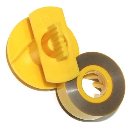 Taśmy węglowe - taśmy pokryte węglem, działają na zasadzie odbicia (miejsce wykorzystane na taśmie nie może być użyte po raz drugi, ponieważ pozostaje puste). Taśmy węglowe mają zastosowanie w urządzeniach typu "lift-off". Taśmy nylonowe - taśmy materiałowe nasączone tuszem. Mogą być użyte kilka razy (tusz zużywa się stopniowo w trakcie użytkowania taśmy), wobec czego działają dłużej niż taśmy węglowe. Taśmy nylonowe mają zastosowanie w urządzeniach typu "covered-up". |