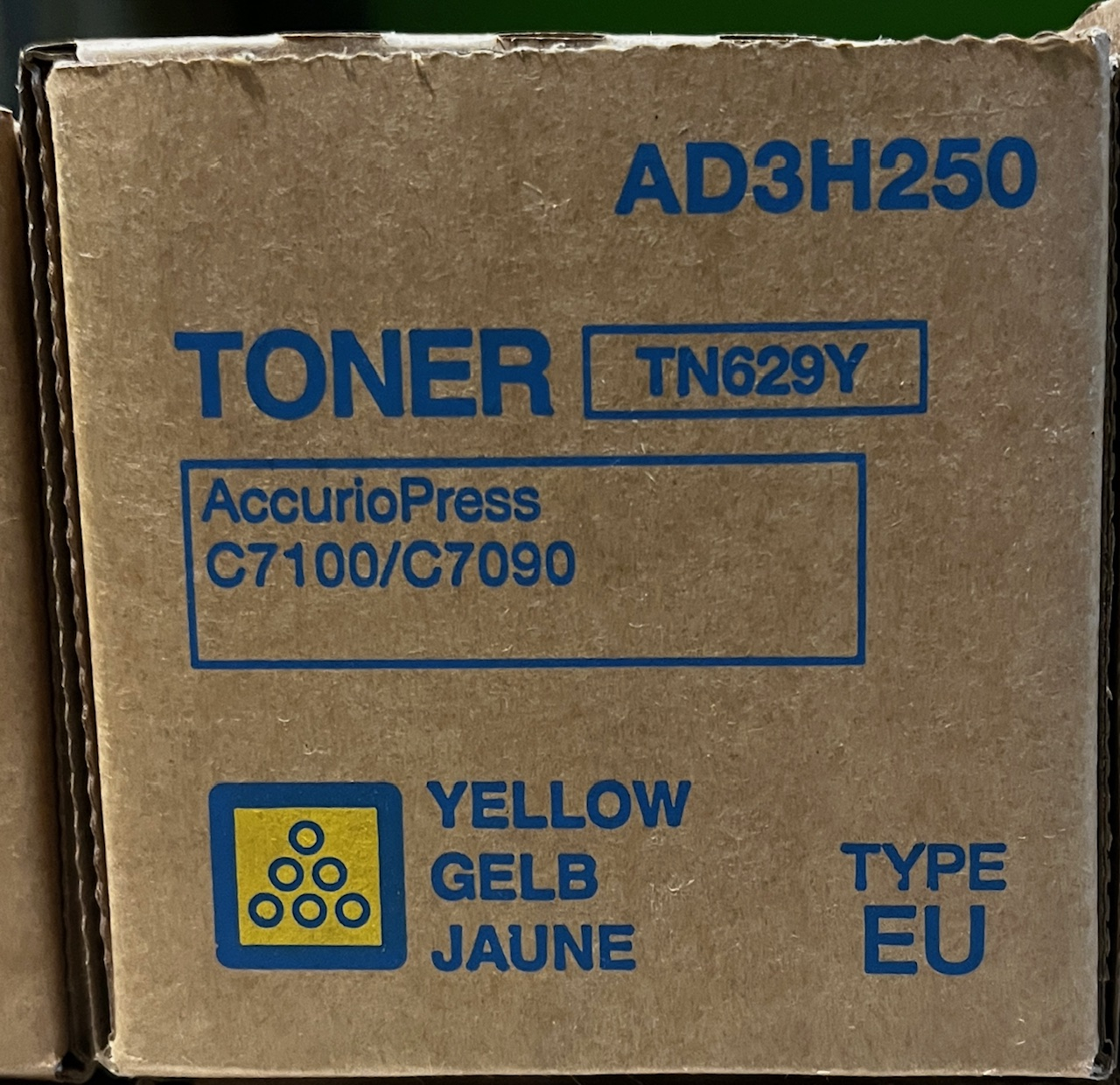 Toner Konica Minolta TN-629Y AD3H250 yellow Bizhub Accuriopress C7100/C7090 oryginałToner Konica Minolta TN-629Y AD3H250 yellow Bizhub Accuriopress C7100/C7090 oryginał