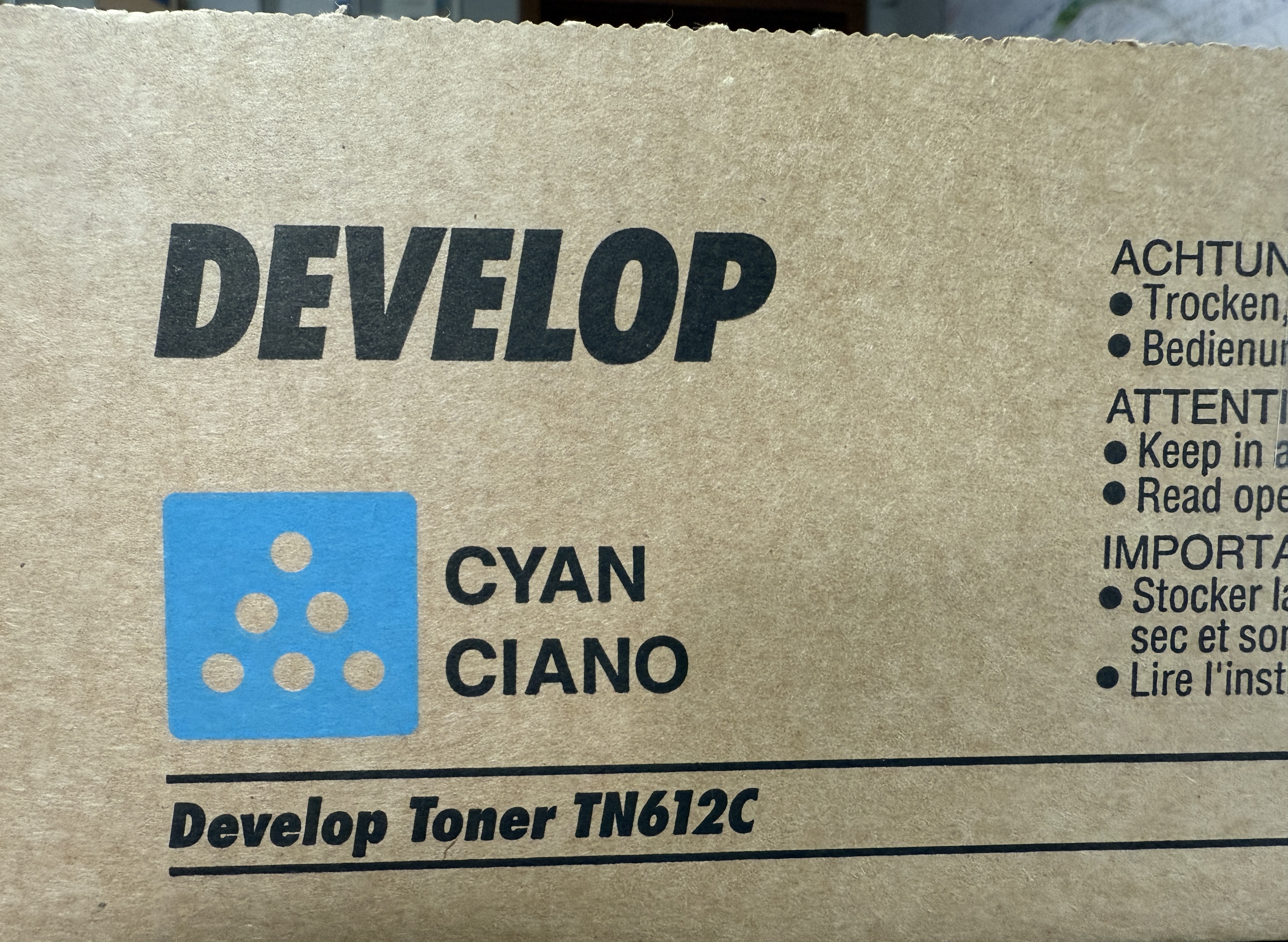Toner oryginalny Develop TN-612C. Pasuje zamiennie zamiast TN-610C, a jest dużo tańszy.